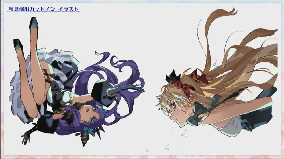宝具カットインイラストは森井さんによる描き下ろし。←のアンキエレシュキガルはステイナイトの凛とセイバーとの契約シーンをモチーフにしているとのこと。