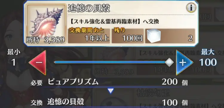 ストーリー進行などで手に入るピュアプリズムというアイテムを用いることで交換所で好きな強化素材と交換することができる(最大100個まで)。