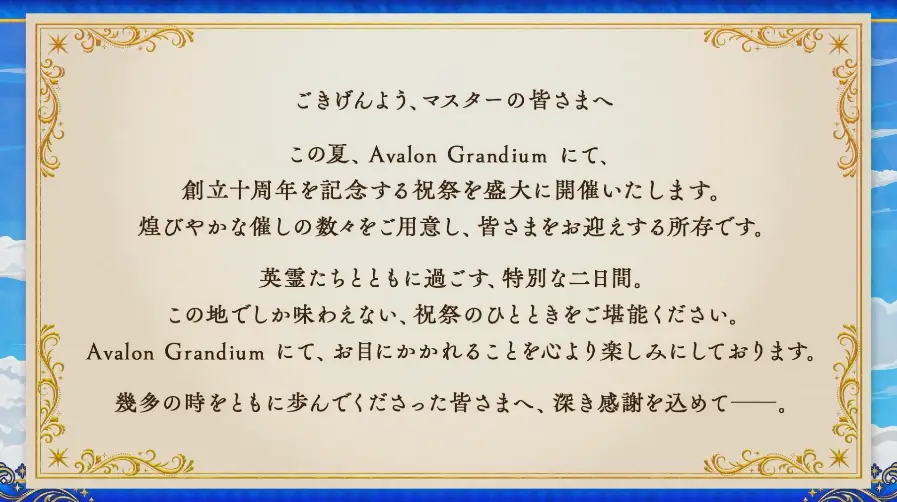 FGOの10周年イベント(FGOフェス2025)の最新情報をまとめています。10周年のFGOフェスで何が発表されるかの予想や、歴代の周年キャンペーン情報についてもまとめて紹介しているので周年イベントが気になる方は是非参考にしてください。