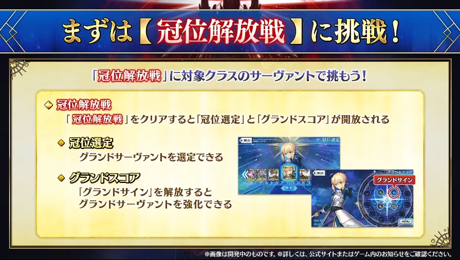 グランドサーヴァントの選定およびグランドスコアは、冠位解放戦をクリアすることで開放される。