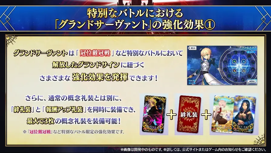 冠位戴冠戦をはじめとした特別なバトルにおいて、各クラスのグランドサーヴァント限定のクラススコア「グランドスコア」が有効となる。