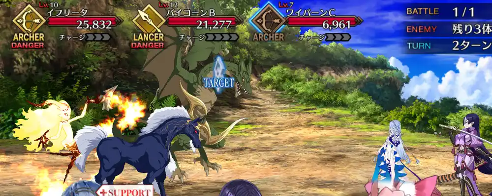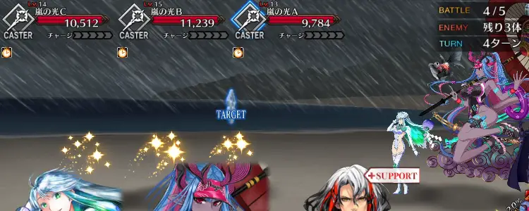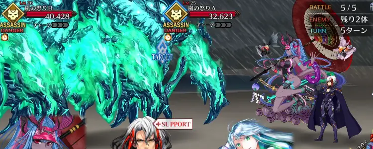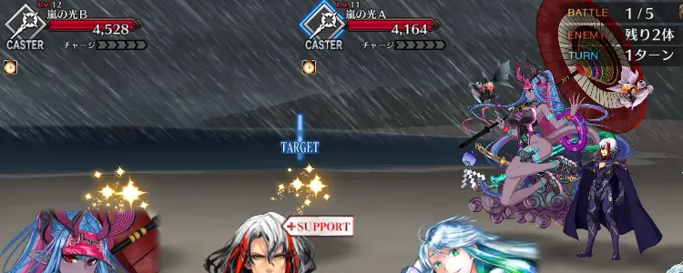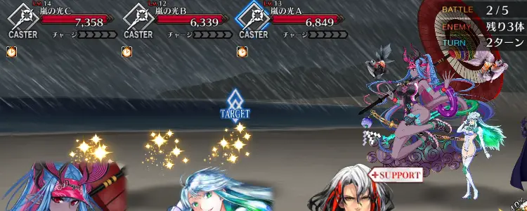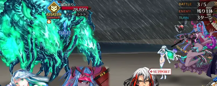 サポートがゲスト固定。各wave開始時、敵全体にダメージ(5000程度)。開幕味方全体NP30%チャージ。