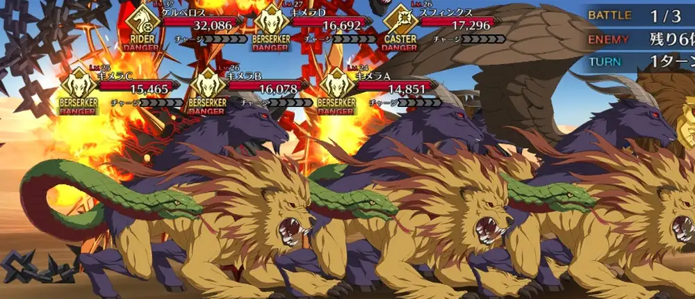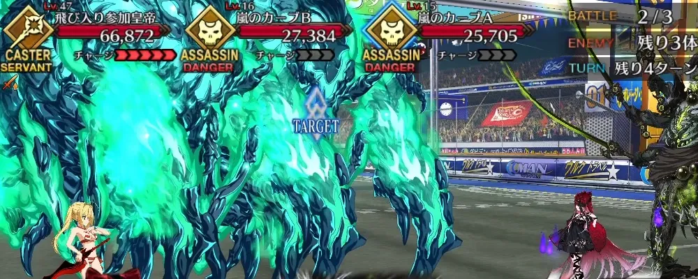 ブレイクごとにエネミーに毎ターン宝具バフやガッツや毎ターンチャージなどが付与される。道中ギミックにより味方に回避が付与されるが、チャージ攻撃が無敵貫通なので注意。