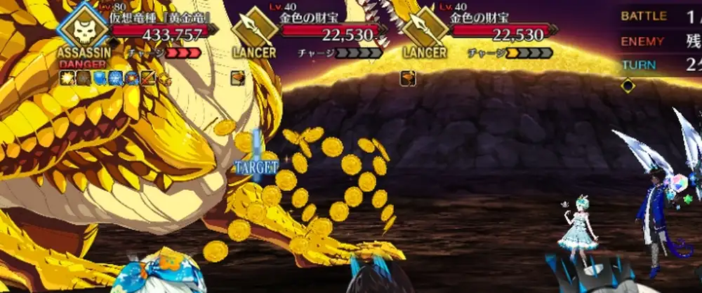 取り巻きに回避(1回)が付与。特殊耐性が付いているので純血竜スキルの耐性ダウンを忘れずに使おう。ブレイクで黄金竜チャージ最大。