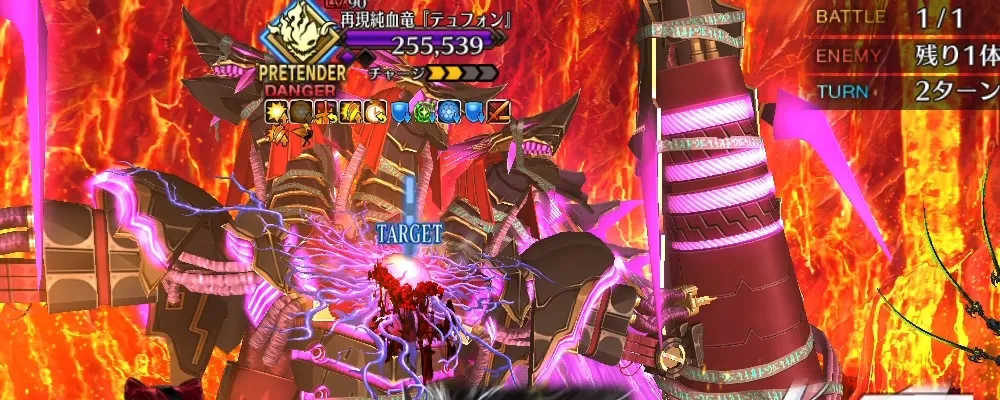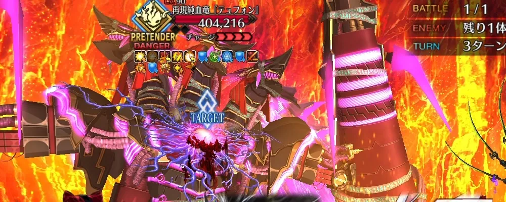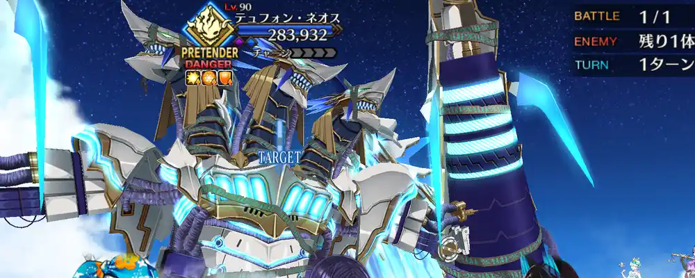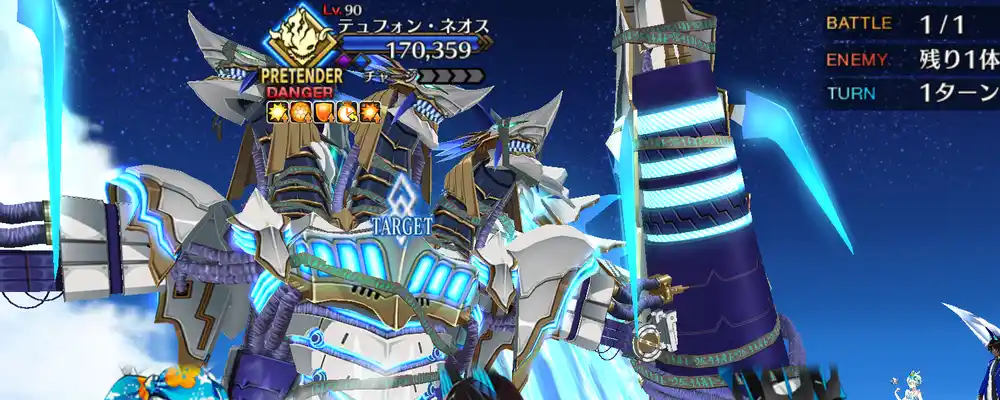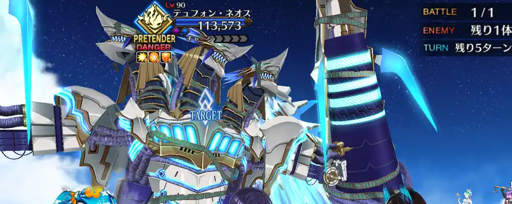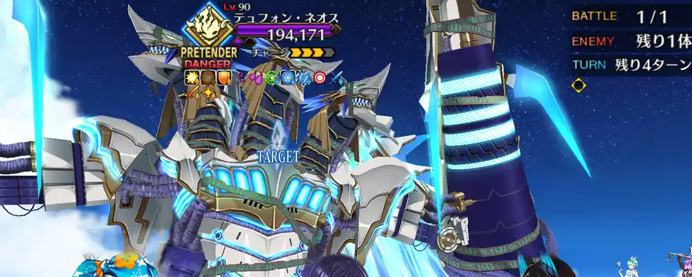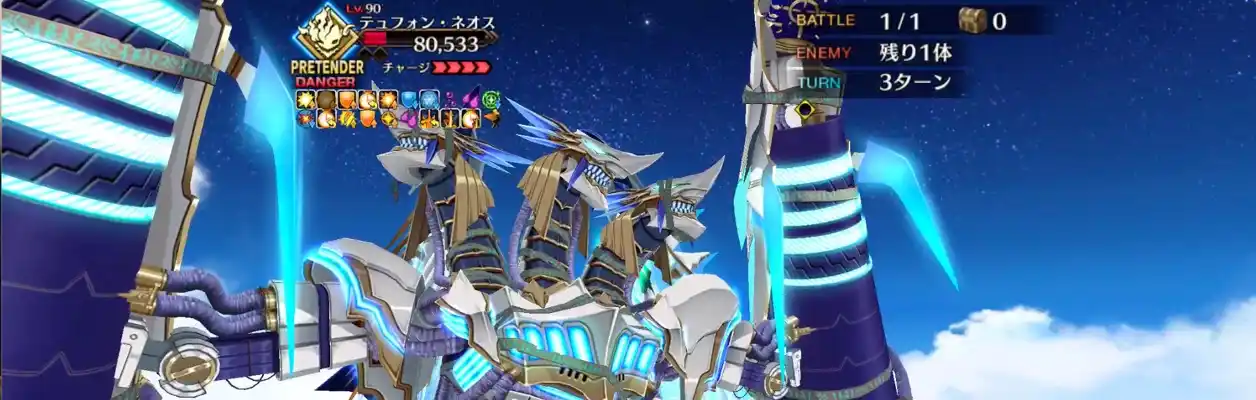 ゲストのテュフォン単騎固定の耐久戦。マスタースキルが純血竜スキルに変化。3ターン経過でクリア。