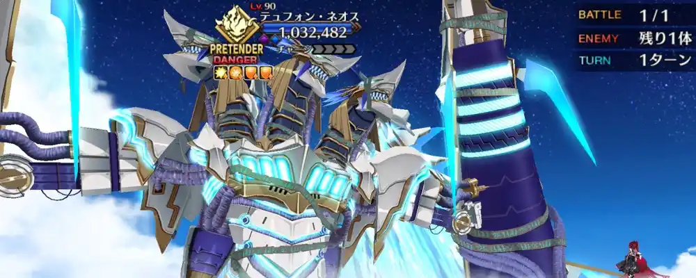 バトルなし。クリアで性能試験クエストやテュフォンの霊基解放クエスト、純血竜スキルのオーバーブーストが解放される。