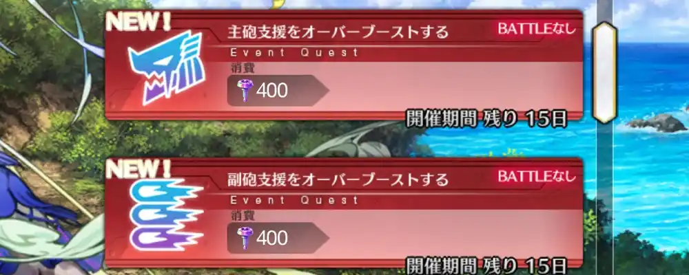 スーパーボルトを各100ずつ使用。ひとつクリアするごとに幕間が開放され、幕間をクリアすると別の改修クエストに挑める。