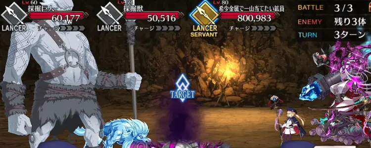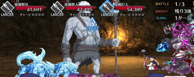 3-1-3の配置であり、役割分業で行く場合は1,3を全体2連射で真ん中を単体に任せる(もしくは全員個別で処理)というのがセオリーになるが、特攻礼装無しにしては2waveと3waveの負担がかなり大きい。