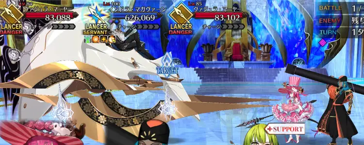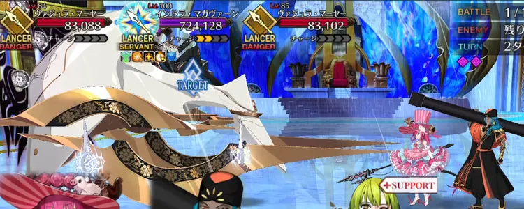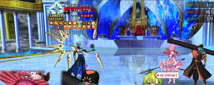 特殊耐性によってインドラをいきなり直接撃破する動きを狙うハードルは非常に高いのであまりオススメはしないが、極まったアタッカーやサポーター陣をフルで活用する周回でもOKという方であれば試してみるのもなくはない。