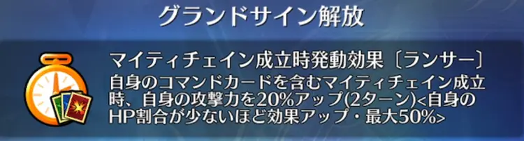 | 冠位選定 | ・該当クラスのグランドサーヴァントを選択 ・Lv.100+表スキルマが選定条件 |