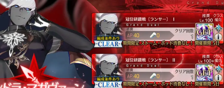 | 冠位解放戦 | ・1回クリアで終了 ・クリアで該当クラスのグランドグラフ解放 |
