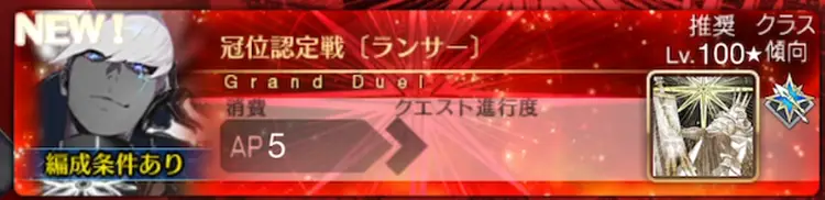 | 冠位認定戦 | ・1回クリアで終了 ・腕試しクエスト |