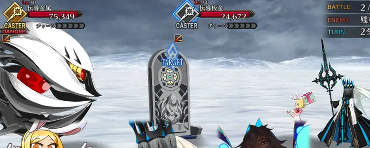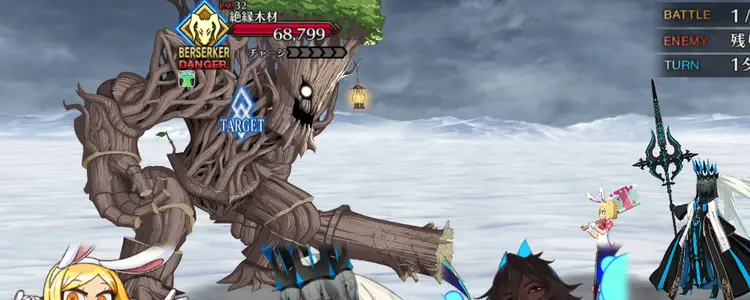 倒してすぐ敵が控えから出てくる即時補充形式のクエストで、開幕時にNP50%チャージが付与される。