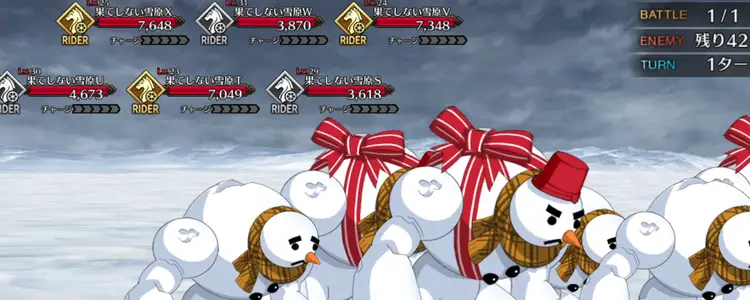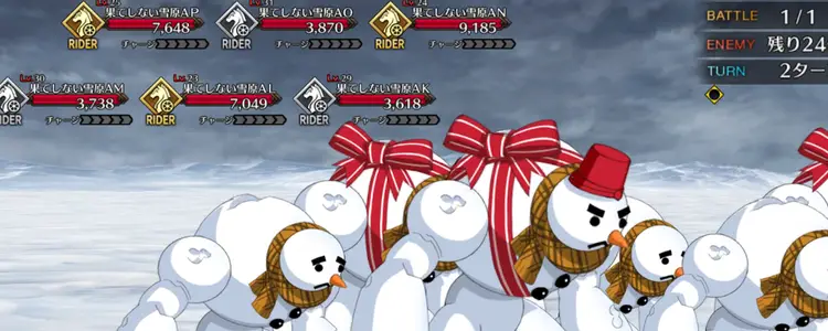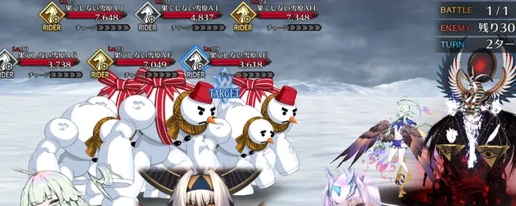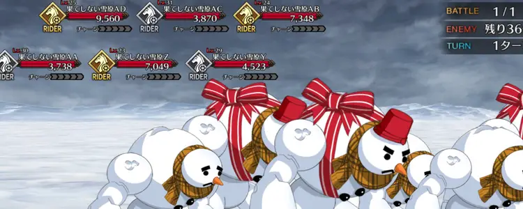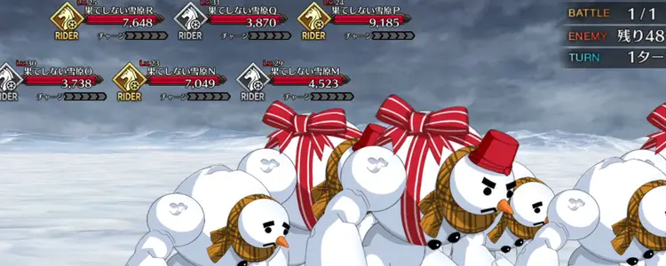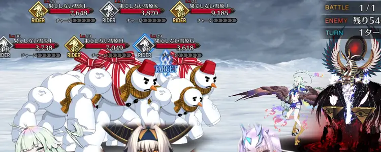 フィールドギミックとして毎ターン6体ずつ勝手に撃破されてくれるが、54体のエネミーを全員撃破する必要があるので、全体宝具を連発できるようなサーヴァントを複数連れていき、宝具を連射していこう。