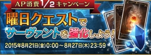 また、このタイミングで星3サーヴァントの確率は20%から40%に上昇、星3概念礼装の確率が60%から40%に減少し、従来よりもサーヴァントを狙いやすくなった。