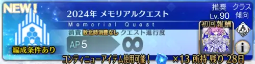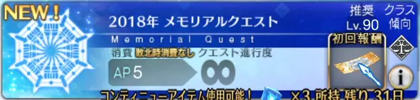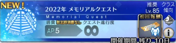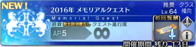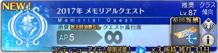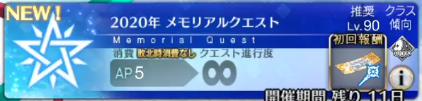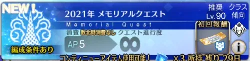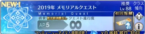 メモリアルクエストのクリア報酬として周年記念礼装の交換券がゲットできるので、可能な限り全てのメモリアルクエストをクリアしておくことが推奨される。
