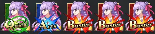 ※ 背景色は各カードの色を表しています。水着パッションリップのスキル宝具と再臨