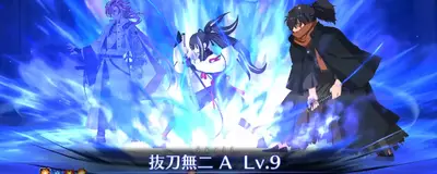 | 効果 | 納刀体勢の時、自身の攻撃力アップ(1T/30%) +自身の宝具威力アップ(1T/OC:10〜30%) &無敵貫通を付与(1T) &防御無視を付与(1T) +敵単体に超強力な神性特攻攻撃(150%) |
