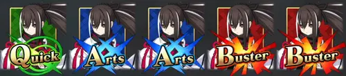| 自身のアーツ性能アップ(3T/20〜30%) &バスター性能アップ(3T/20〜30%) &人属性特攻を付与(3T/30〜50%) |