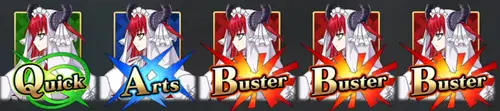 | 宝具 | 【 自身のバスター性能アップ(3T/OC:10〜30%) +敵全体に強力な攻撃 &攻撃強化解除 &呪いを付与(3T/1000) &やけどを付与(3T/1000) |
