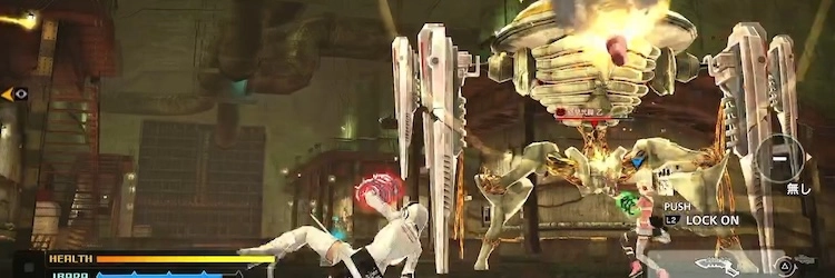 砲撃弐脚の頭部や肩に貼り付いている間、被弾する攻撃はヘッドバッドとヒップスタンプ。