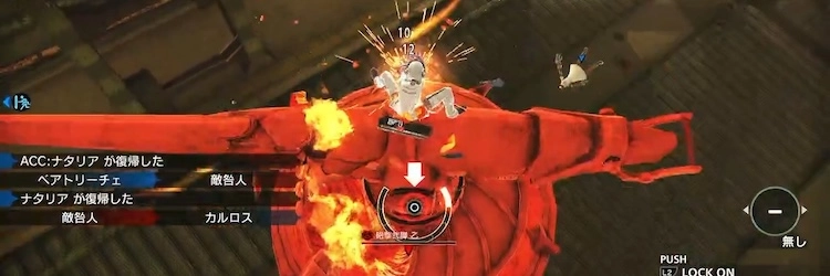 砲撃弐脚の頭部や肩に貼り付いている間、被弾する攻撃はヘッドバッドとヒップスタンプ。