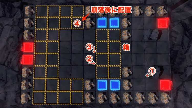 地雷は敵に固定ダメージを与えることができますが、味方のマスを巻き込むと味方にもダメージが入る点に気をつけましょう。