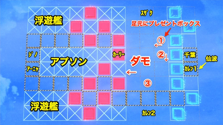 時限爆弾が多数設置されているので、浮遊KMF推奨。バタララン・ドゥは全爆弾が爆発後に配置。