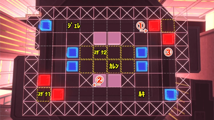 スザクは左2人に付与することで右側の味方に攻撃対象を変えるために動き出すので、卜部とリョウのKMFスキルを当てて撃破。