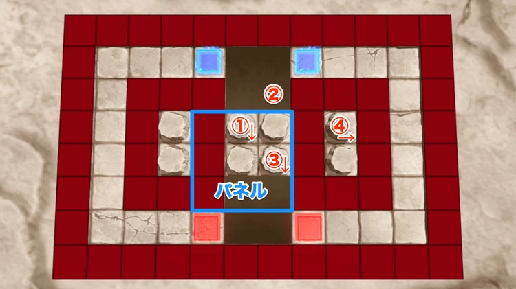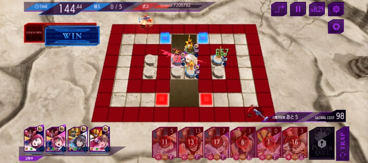 今回のステージでは左右と下の3箇所の赤マスをボスが周回する形となる。1体では対処は難しいので、最低でもアタッカーを2体編成して方向転換を駆使しよう。