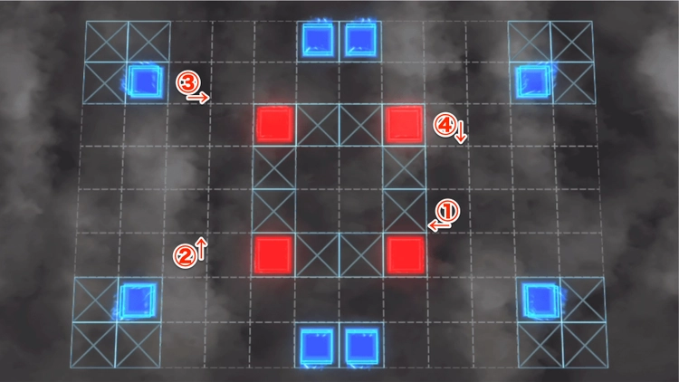 最短3ステージでマップ中央のゴールに辿り着く。ゴールすると星4の汎用凸ロケット20個とギアスコイン100,000が獲得できる。