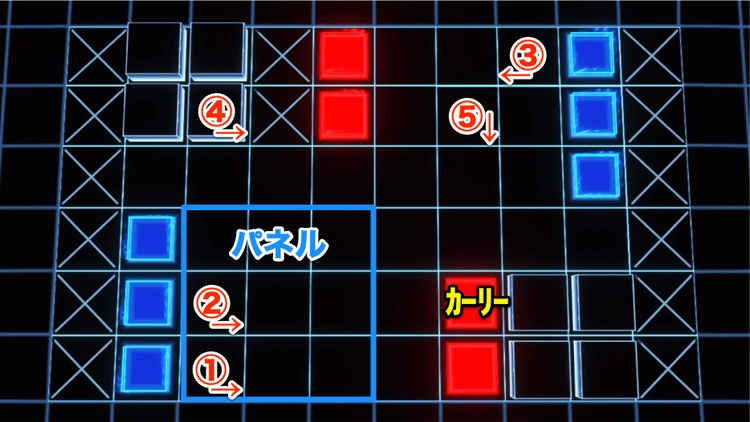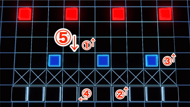 ①〜⑤を順に配置してリジェネ。右敵6体落下、②にチャージしてスキル。