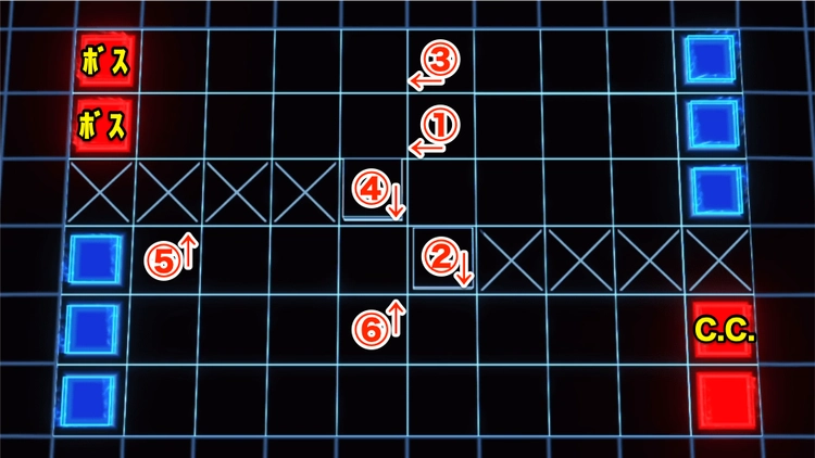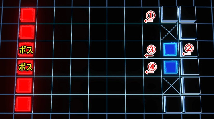 敵ボスは右→上→左の順に倒すと効率が良い。