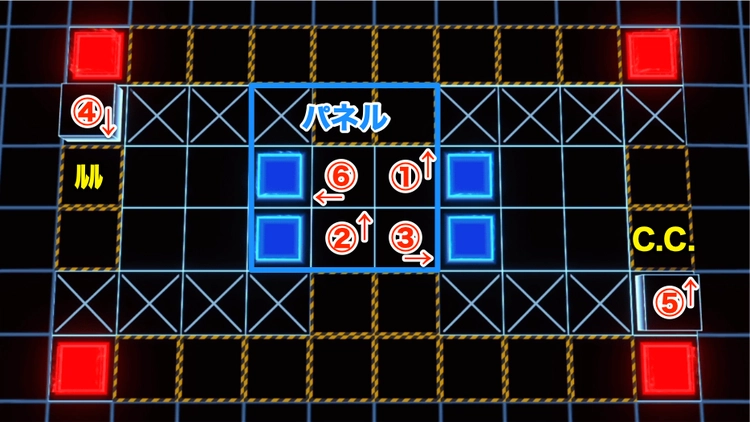 ボスが出現したらシュナイゼルはフレイヤでマリアンヌを撃破して撤退、その後右側のシャルルが動き出したらルルーシュのスタンとこちらのシャルルの減速で時間を稼ぎ、再度配置可能となったシュナイゼルでスキルを使用して撃破。