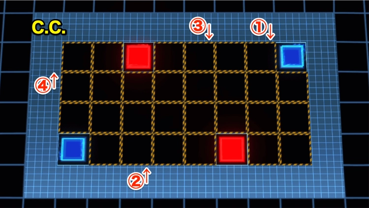 ┗①は臨機応変に方向転換 - 無敵カレンが①の後ろのマスに侵入したらルルでスタンを付与し、GR連発で撃破