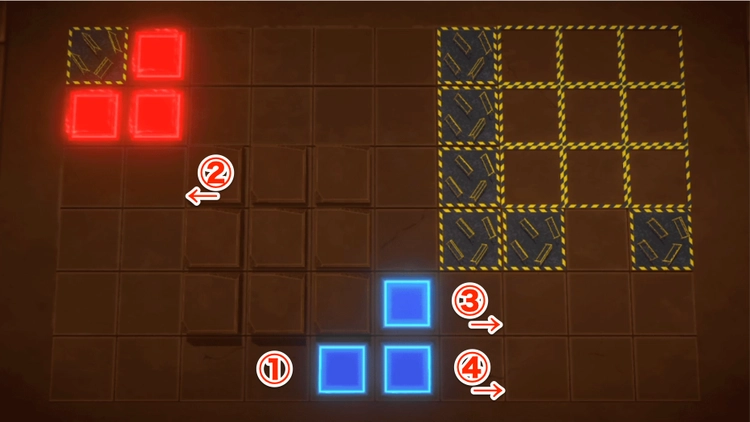 中央に出現するボス4体は画像の位置で引き寄せ/吹き飛ばしを行うと黄字の右上のみ残る。