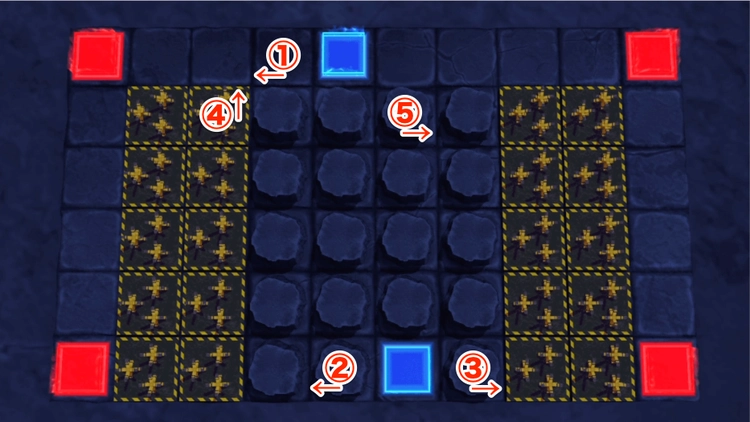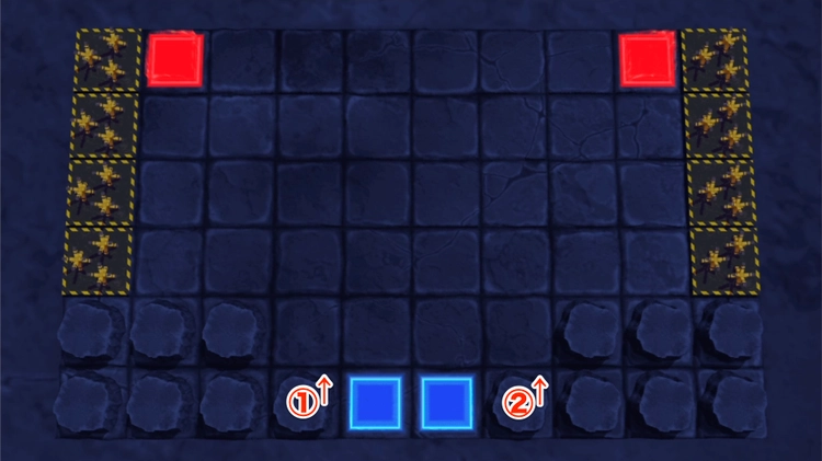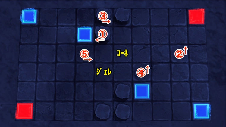 拠点周囲には爆弾が設置されているので、左右の敵1体目が爆発させてからキャラを配置する。
