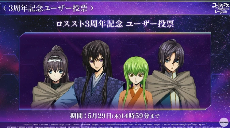 周年イベントではルルーシュ、C.C.、スザク、カレンの4人がガチャにて実装!