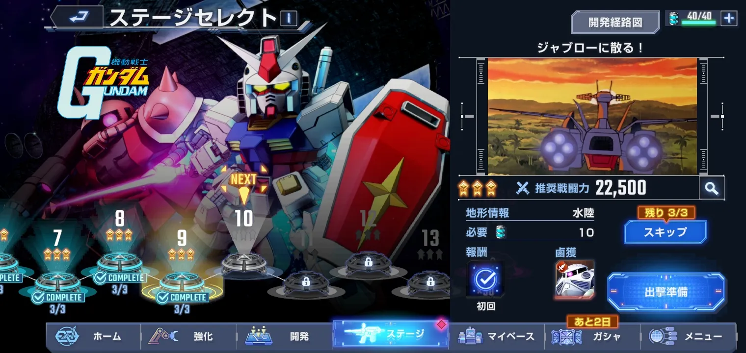 各種強化育成ステージでは星3評価を取るとスキップ周回できるようになる。