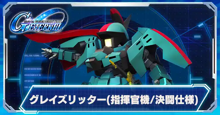 ジージェネエターナルのグレイズリッター(指揮官機/決闘仕様)を紹介しています。グレイズリッター(指揮官機/決闘仕様)の評価や地形適性、武装、アビリティ、入手方法などを掲載しているので、Gジェネエターナルをプレイする際の参考にしてください。