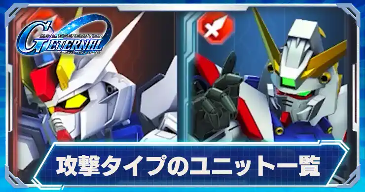 Gジェネエターナル(ジージェネレーションエターナル)の攻撃タイプの機体(ユニット)一覧の記事です。Gジェネレーションエターナルをプレイする際の参考にしてください。