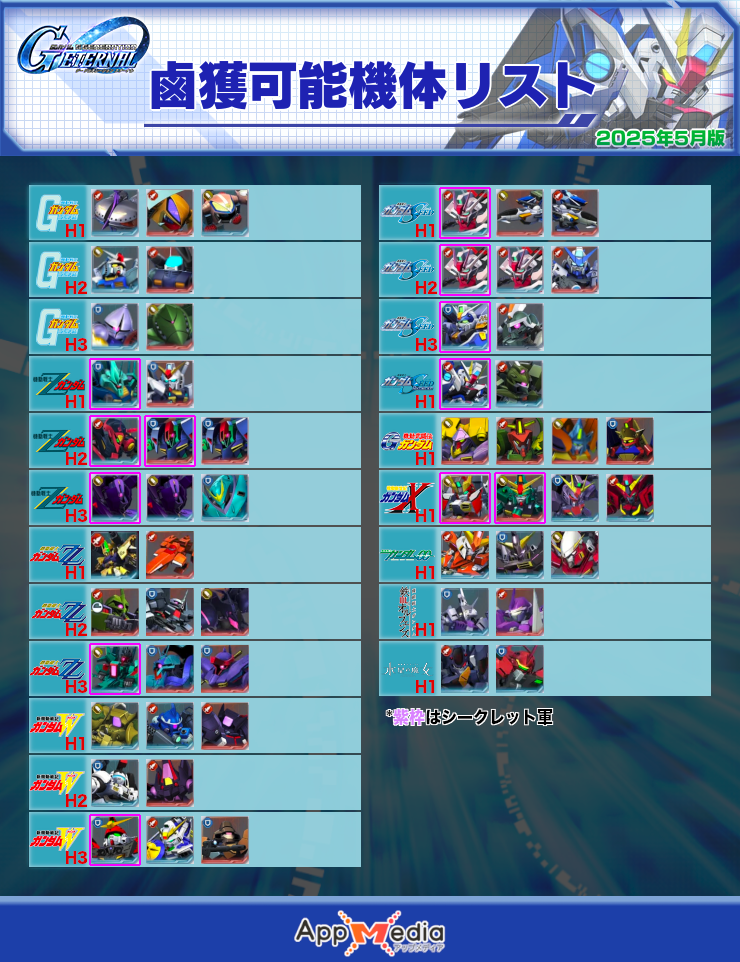 | シナリオ | 鹵獲可能機体 *紫枠はシークレット軍 |