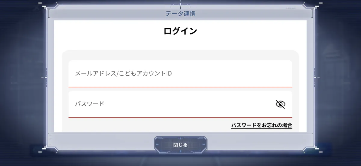 データ連携では、バンダイナムコIDのログイン時に「Googleでログイン」が使用できない。