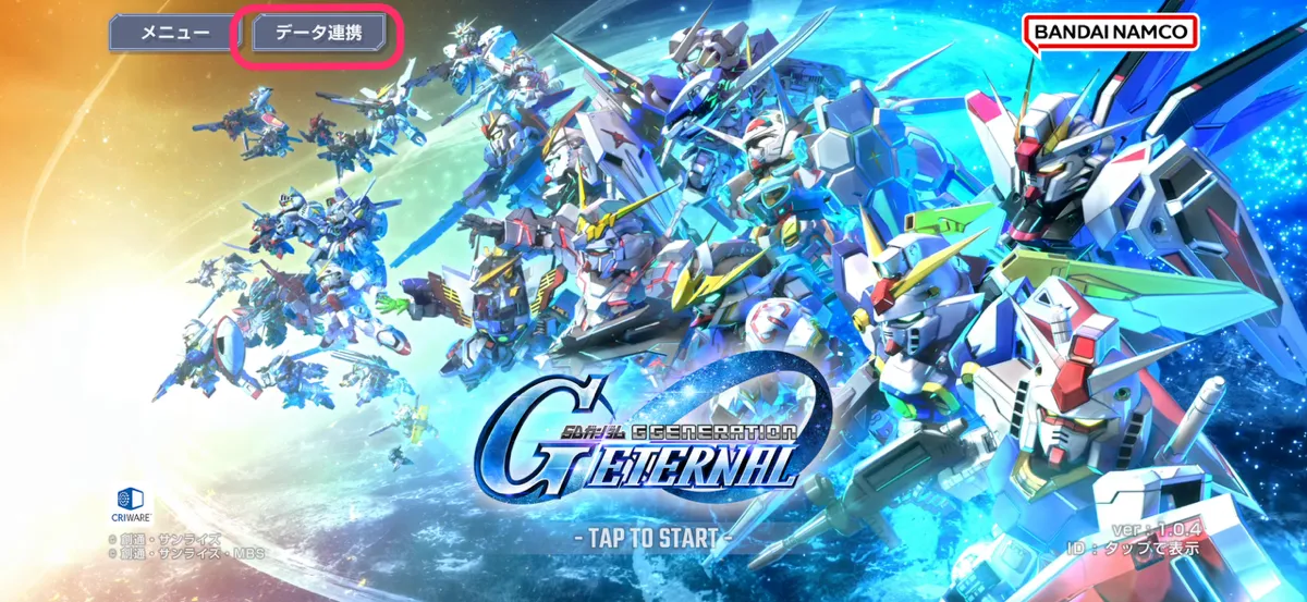| ① | タイトル画面左上の「データ連携」をタップ |
