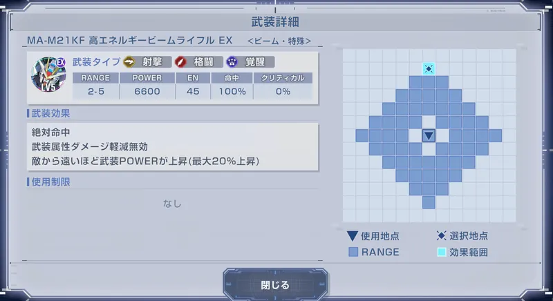 | 射程 | パワー | EN | 命中 | クリティカル |