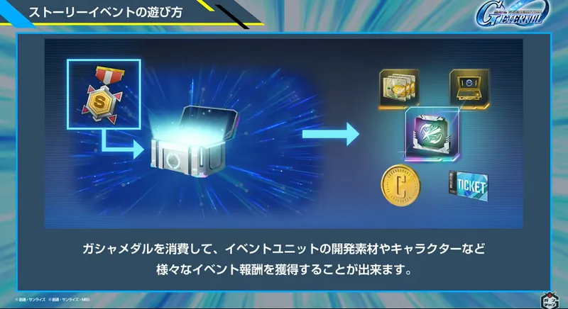 メダルガシャで入手していたSSR機体の開発素材は、ステージのHARDにてランダムドロップで入手できるようになっている。