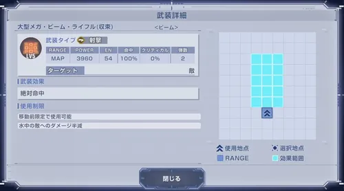 | 射程 | パワー | EN | 命中 | クリティカル |
