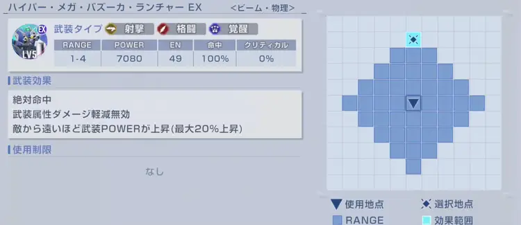 | 射程 | パワー | EN | 命中 | クリティカル |