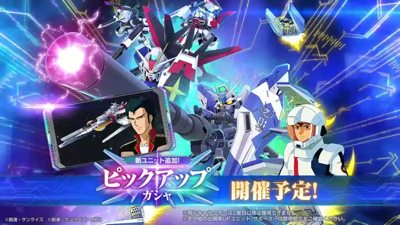 Hi-νガンダムPUガシャでは、初期実装の恒常URユニットや、その後のイベントガチャで恒常追加されたジャスティス、シャアザクII(ジオリジン)なども排出対象となっている。