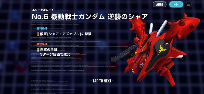 エターナルロード「逆襲のシャア」のエキスパートでは、シャアが搭乗するナイチンゲールを撃破することでクリアとなる。